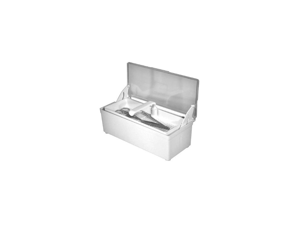 Plastový box na dezinfekci nástrojů.