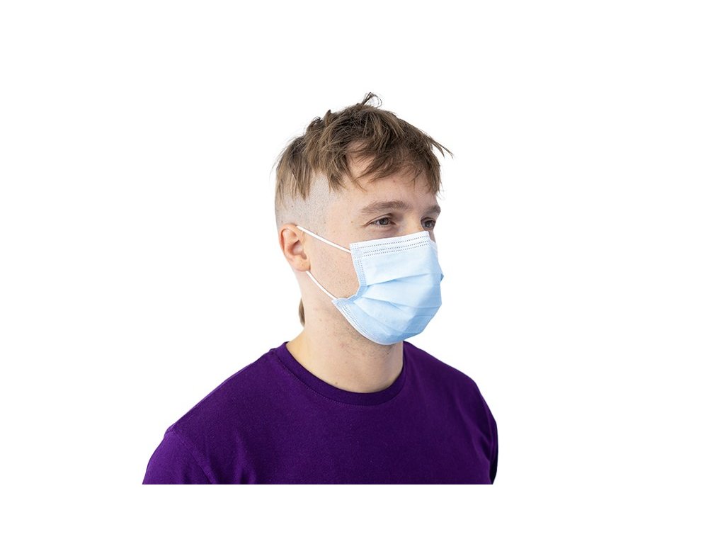 Rouška jednorázová, 3 vrstvá, 50 ks, modrá, 175 x 93 mm